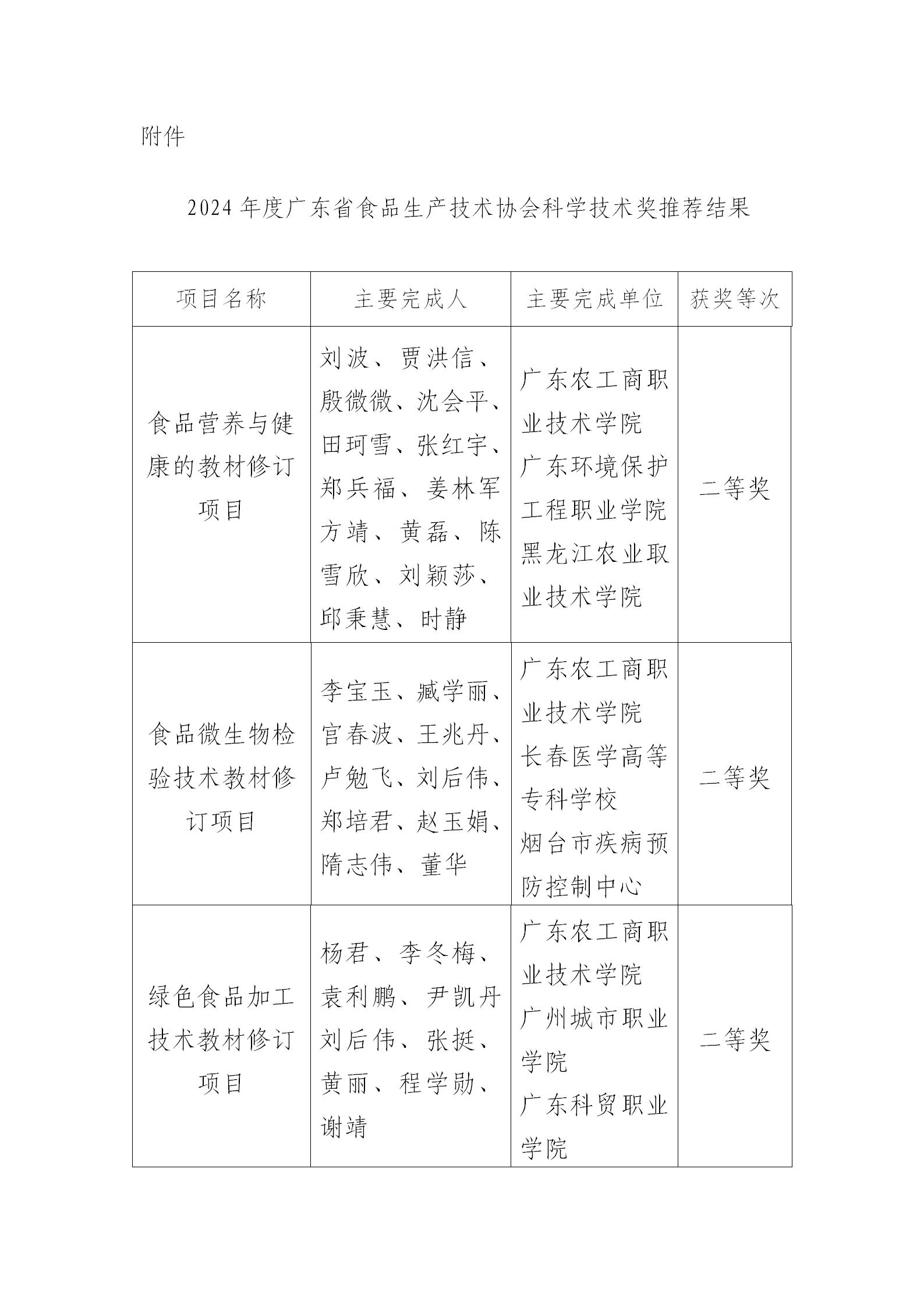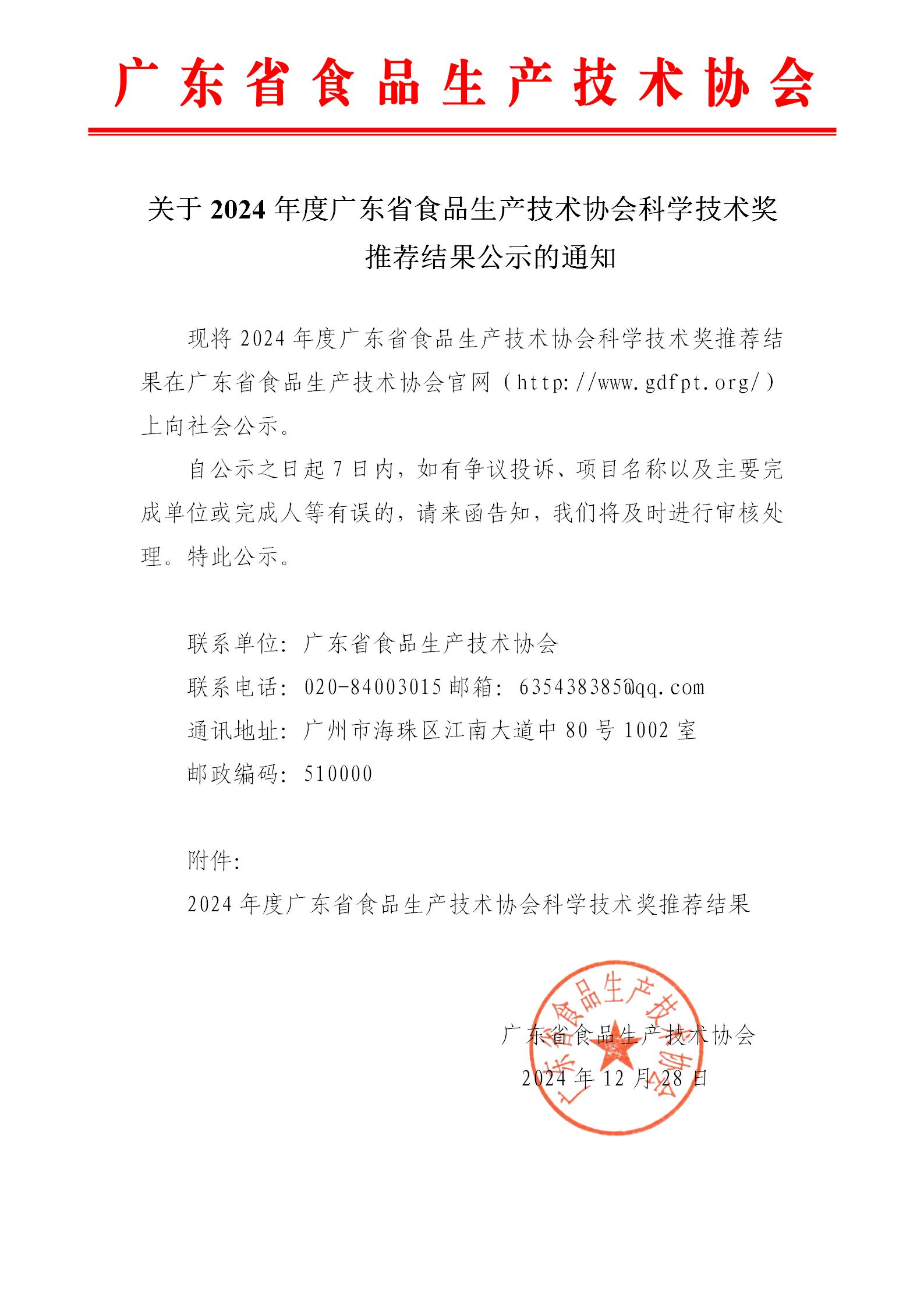 2024年度广东省食品生产技术协会科学技术奖推荐结果公示
